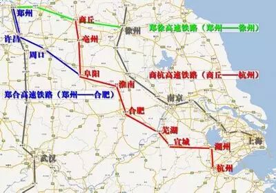 郑合高速铁路从郑州南站引出,经周口至阜阳,在阜阳接入商合杭高速铁路至合肥,在河南境内一共有8个站点。